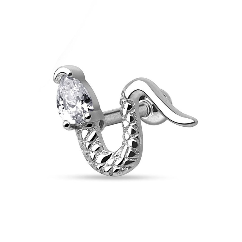 Lleva esta bonita serpiente en tu piercing en el tragus, en la hélice o en el lóbulo de tu oreja, ya que se adaptará perfectamente a cualquiera de estos tres piercings.