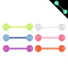 Aquí tienes un fabuloso piercing para la lengua, que brilla en la oscuridad. Elige entre seis bonitos colores a la derecha de la fotografía.