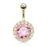 Piercing para el ombligo chapado en oro con brillante grande y rosa