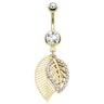 Piercing para el ombligo chapado en oro con colgante con hojas