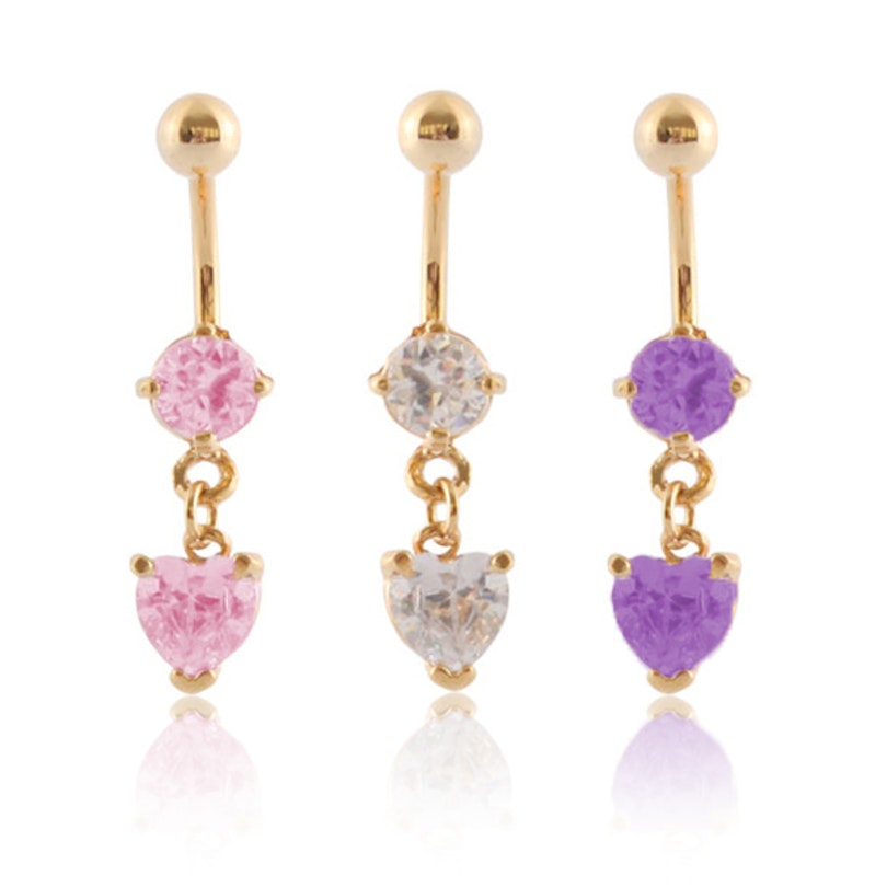 Nombre: Piercing para el ombligo chapado en oro con colgante con un brillante en forma de corazón
