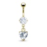 Piercing para el ombligo chapado en oro con colgante con un brillante en forma de corazón