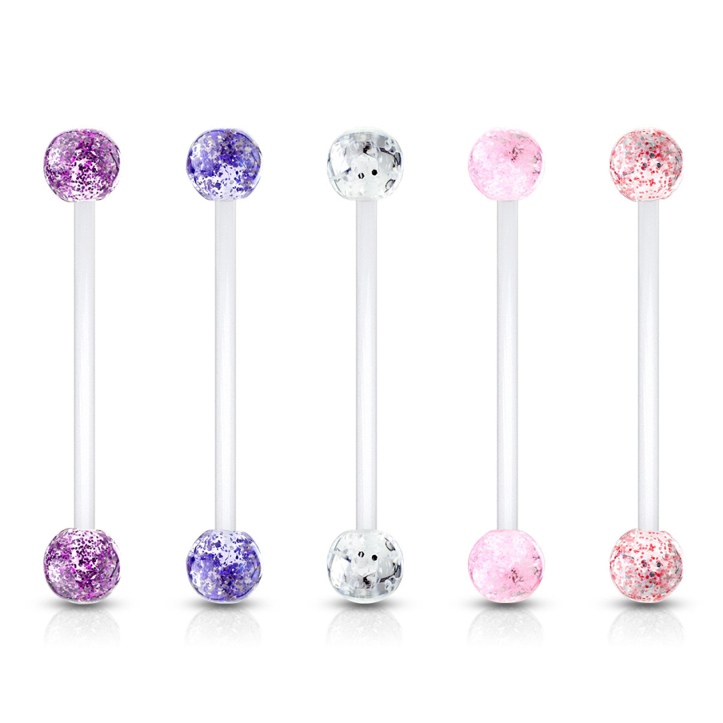 En cada extremo de la barra de PTFE hay una hermosa bola acrílica. Las bolas fueron decoradas con un bonito patrón lleno de brillos. Las bolas miden 6 mm de diámetro y se pueden seleccionar en varios colores: echa un vistazo al menú de la derecha de la imagen para elegir el que más te guste.