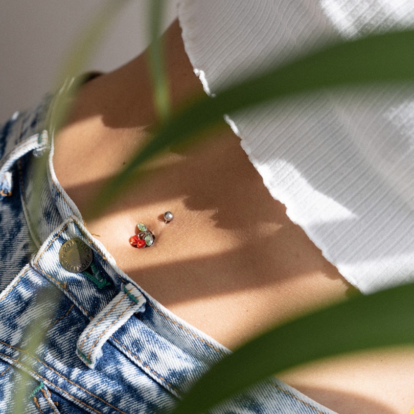 Nombre: Piercing para el ombligo con cerezas de brillantes rojos