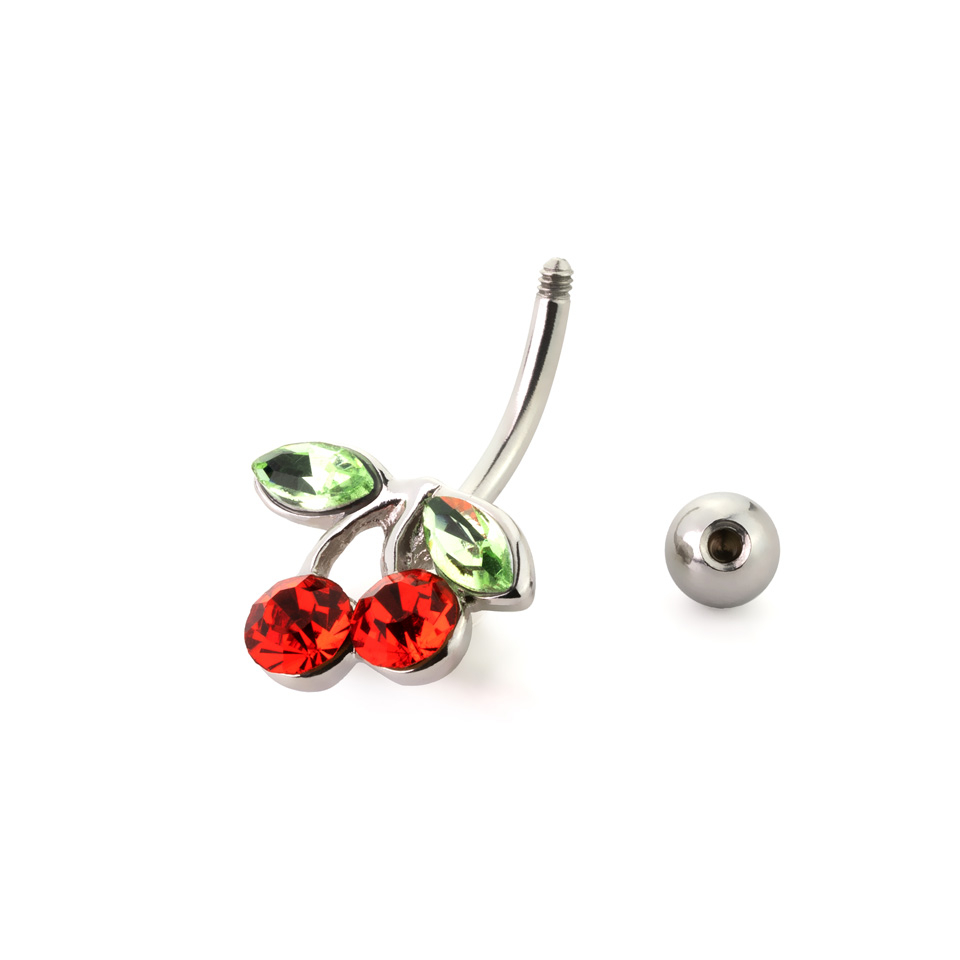 Nombre: Piercing para el ombligo con cerezas de brillantes rojos