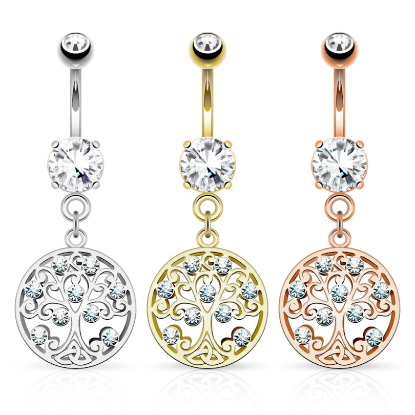 Nombre: Piercing para el ombligo con colgante de árbol de la vida y brillantes