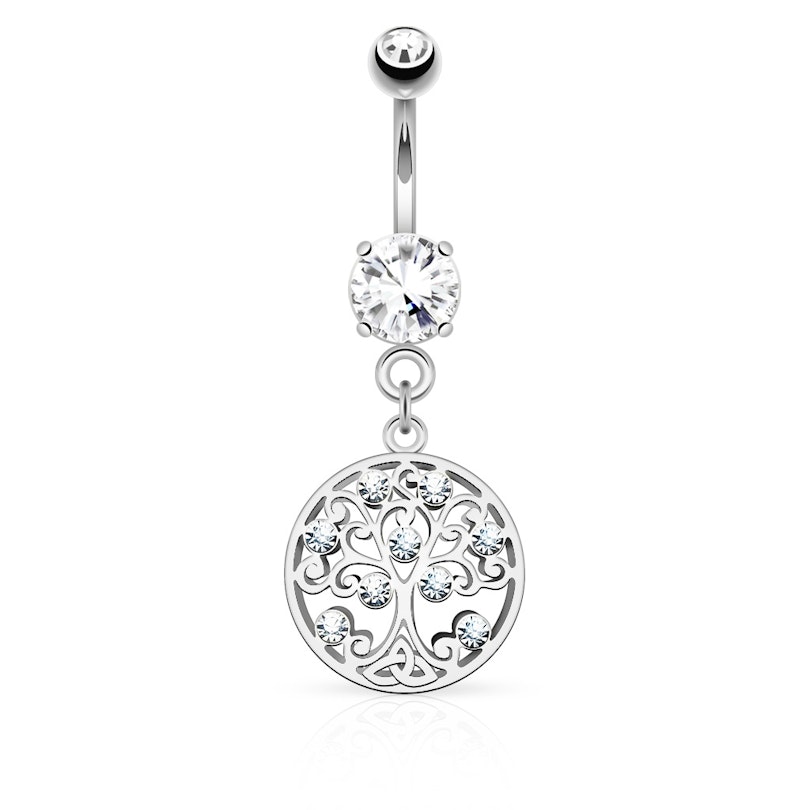 Piercing para el ombligo con colgante de árbol de la vida y brillantes