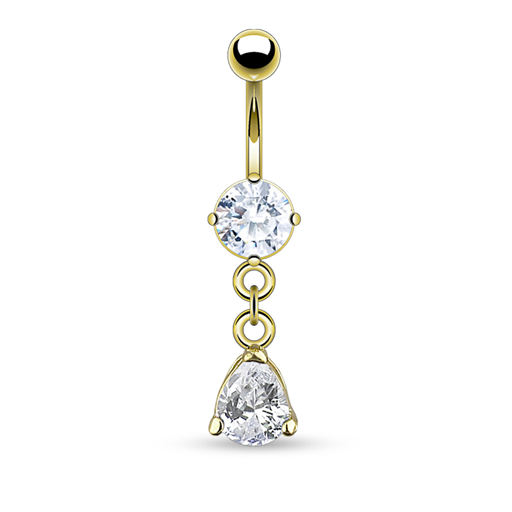 Nombre: Piercing para el ombligo con colgante en forma de gota y brillantes