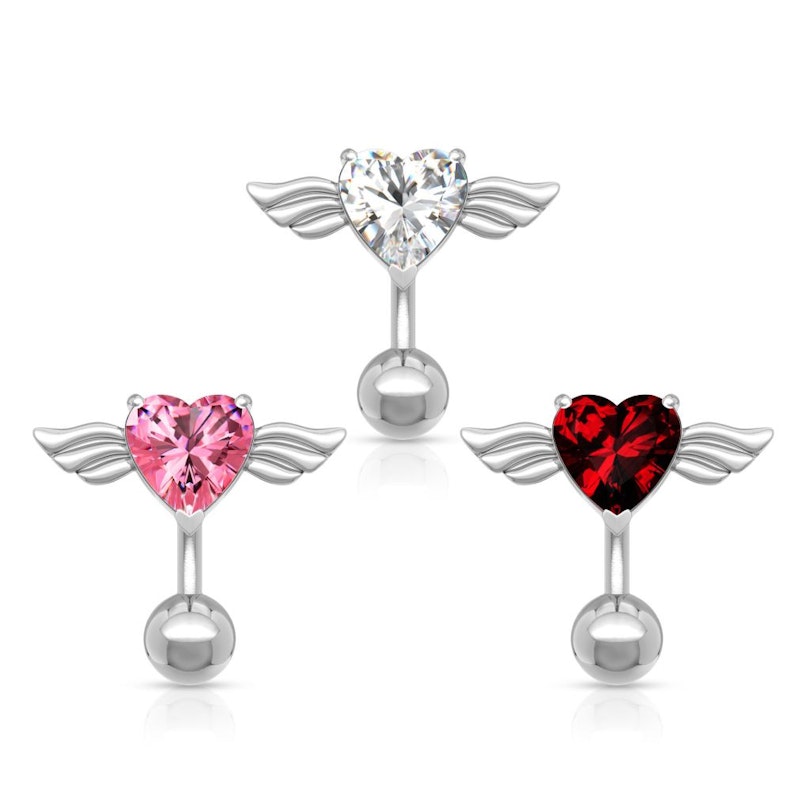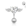 Ya puedes conseguir uno de los símbolos más populares en el mundo de los tatuajes para tu piercing en el ombligo. Por supuesto estamos hablando del conocido corazón alado :-) Esta joya está hecha en acero quirúrgico, el cual es el material más usado en le mundo de los piercings, porque no desprende partículas de níquel. La joya tiene en su centro un bonito brillante tallado, del que podrás elegir su color.