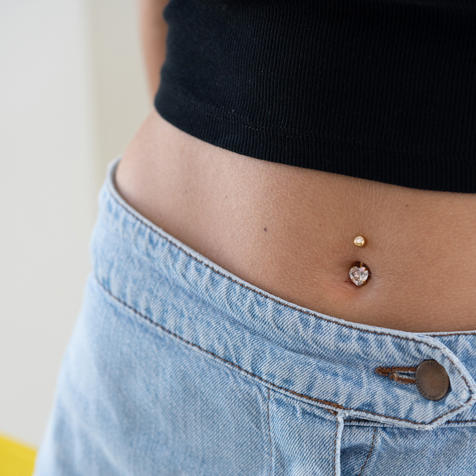 El corazón es un diseño muy popular entre los piercings, y a la vez muy femenino, que queda excepcionalmente bien en el piercing del ombligo.