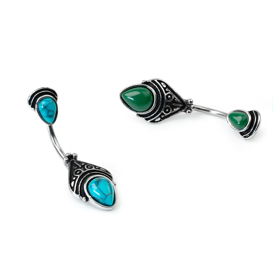Piercing para el ombligo con diseño añejado de filigrana y piedras ovaladas
