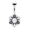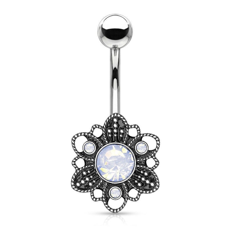 Nombre: Piercing para el ombligo con flor añejada y opalitas