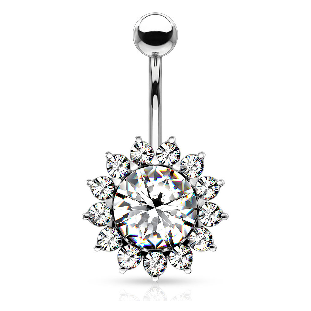 Nombre: Piercing para el ombligo con forma de girasol y brillantes