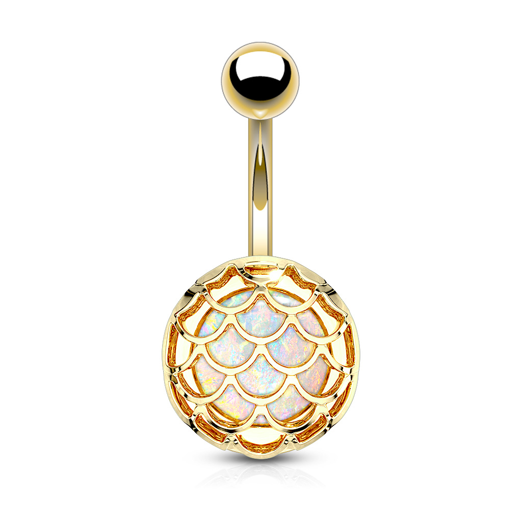 Piercing para el ombligo con opalitas encapsuladas en un diseño de escamas