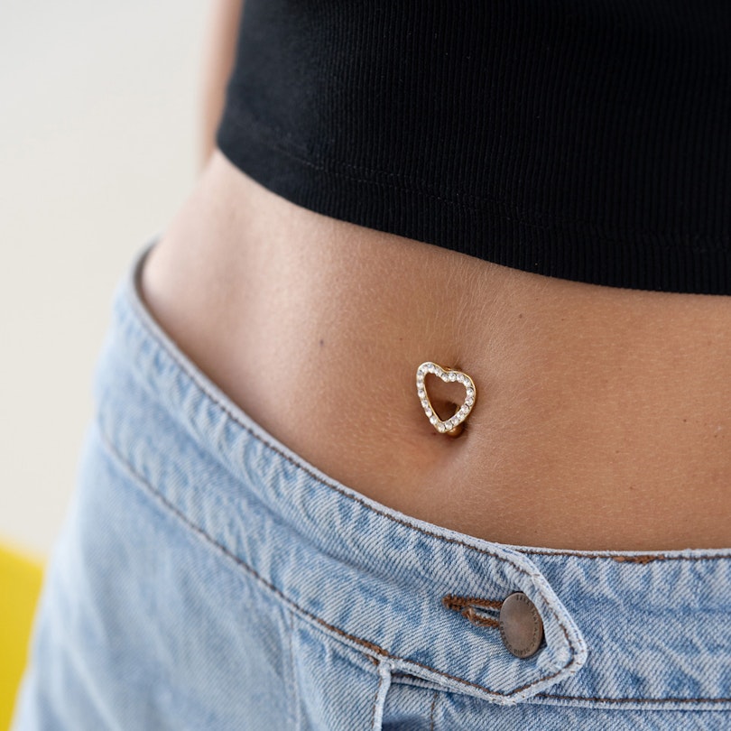 Esta es tu oportunidad de conseguir una joya única para tu piercing en el ombligo que podrás usar tanto si tienes una perforación en el ombligo superior, como inferior. Un piercing en el ombligo invertido significa que la perforación está hecha por debajo del ombligo. Si llevas esta joya en un piercing para el ombligo normal, este bonito corazón quedará justo por encima de tu ombligo, pero también la puedes llevar en un piercing invertido, de modo que el corazón quedará también muy sexy.