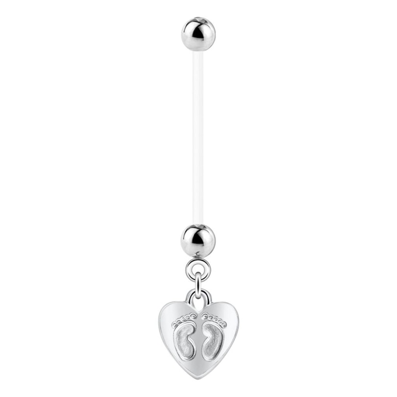 Nombre: Piercing para el ombligo con piecitos y corazón para embarazadas