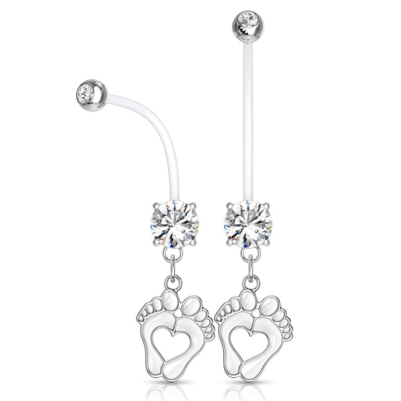 Piercing para el ombligo con piecitos y corazón calado para embarazadas