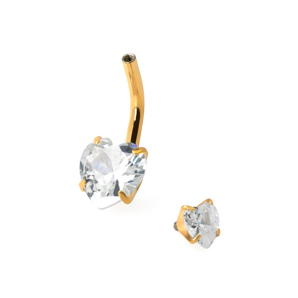 Piercing para el ombligo con rosca interna y corazones