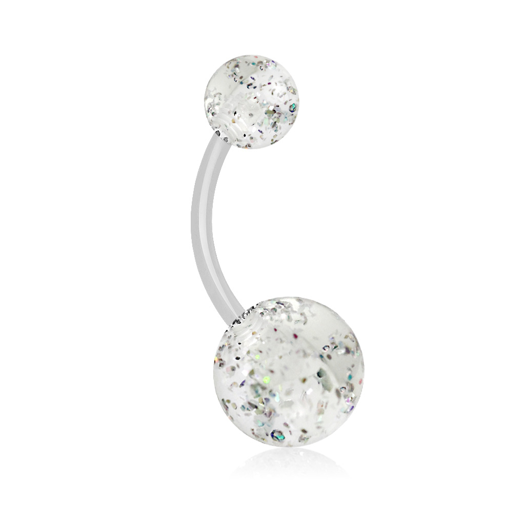 Piercing para el ombligo de acrílico con bolas de purpurina