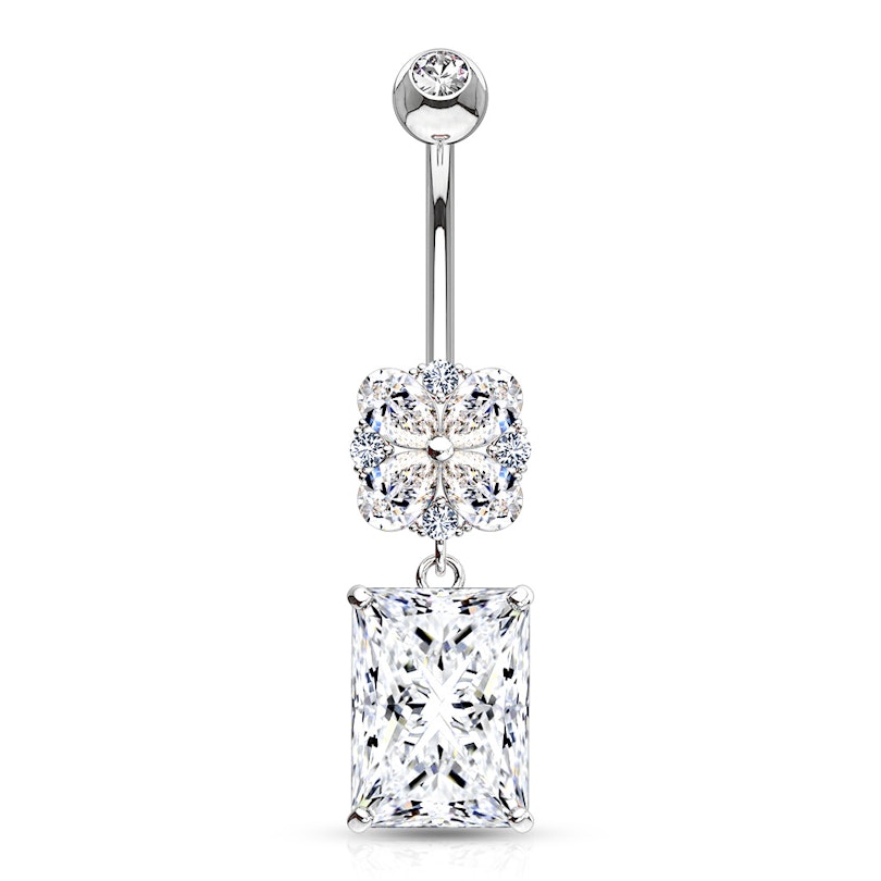 Piercing para el ombligo de oro de 14 quilates con flor y brillante rectangular
