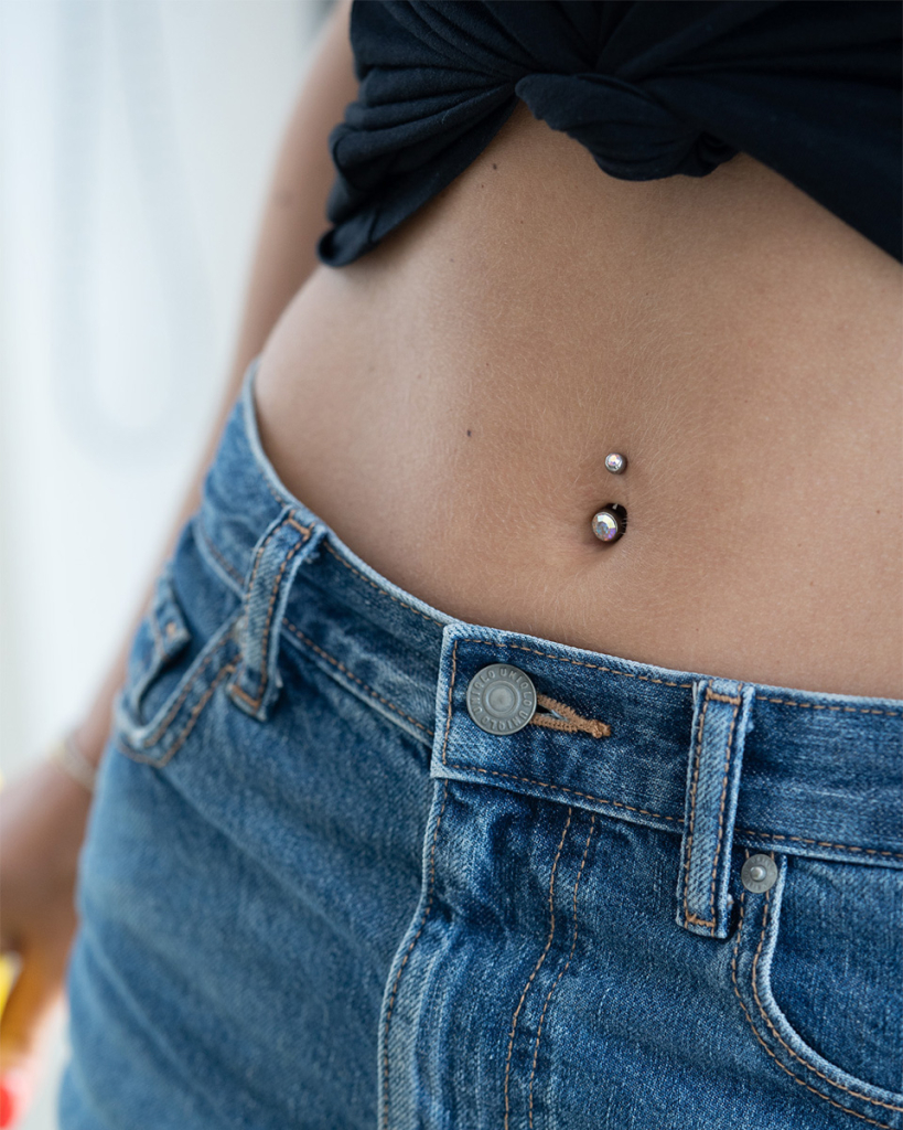 Nombre: Piercing para el ombligo de titanio con dos brillantes