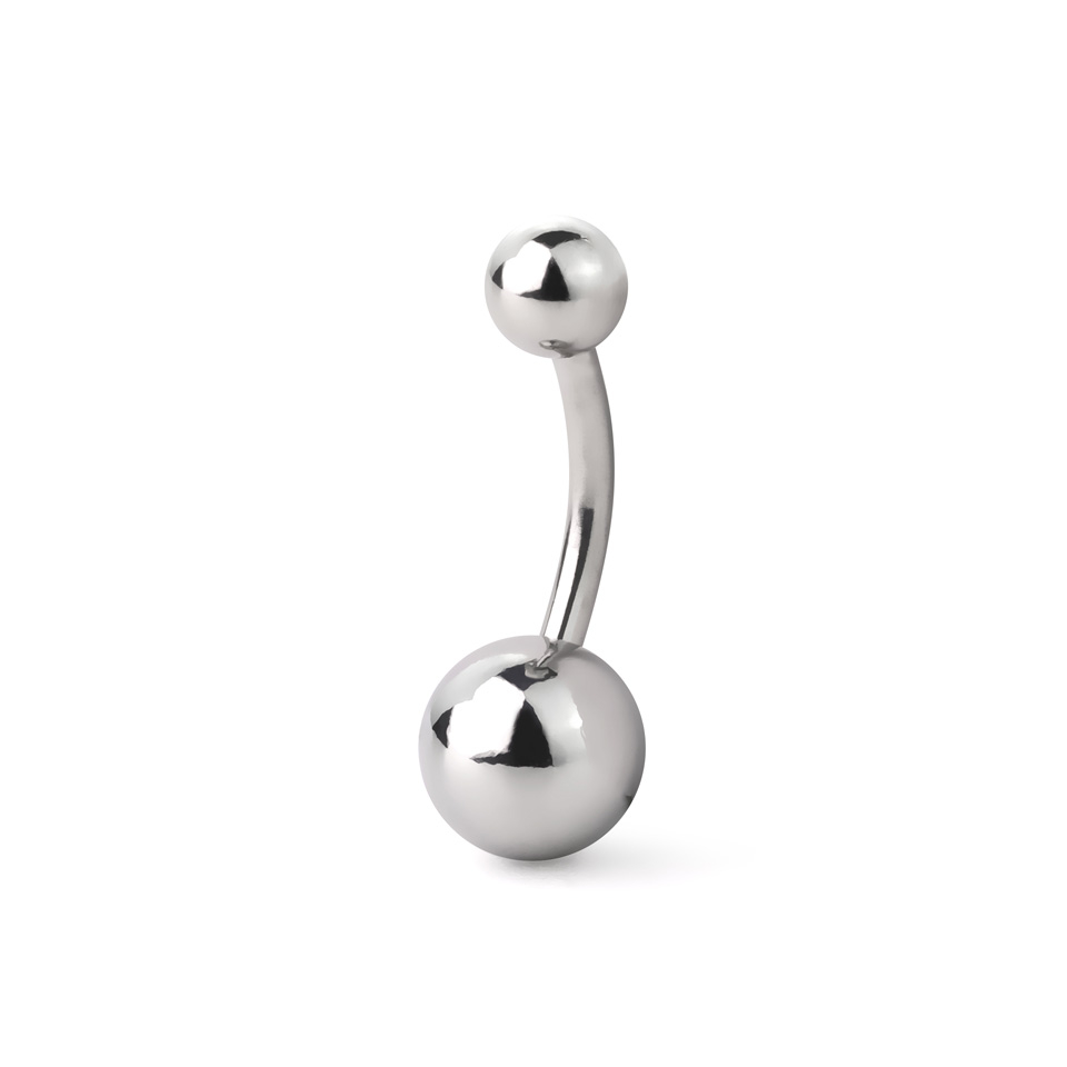 La joya está hecha de acero quirúrgico puro al 100% y posteriormente ha sido pulida especialmente para que no pueda desprender trazas de níquel. Está disponible en varias medidas, aunque la de 10 mm es la más común para los piercing en el ombligo cicatrizados al 100%.