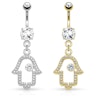 Piercing para el ombligo en oro de 14 quilates con la mano de fátima recubierta de brillantes