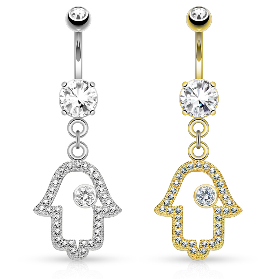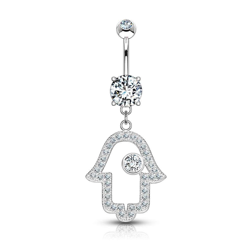 Piercing para el ombligo en oro de 14 quilates con la mano de fátima recubierta de brillantes