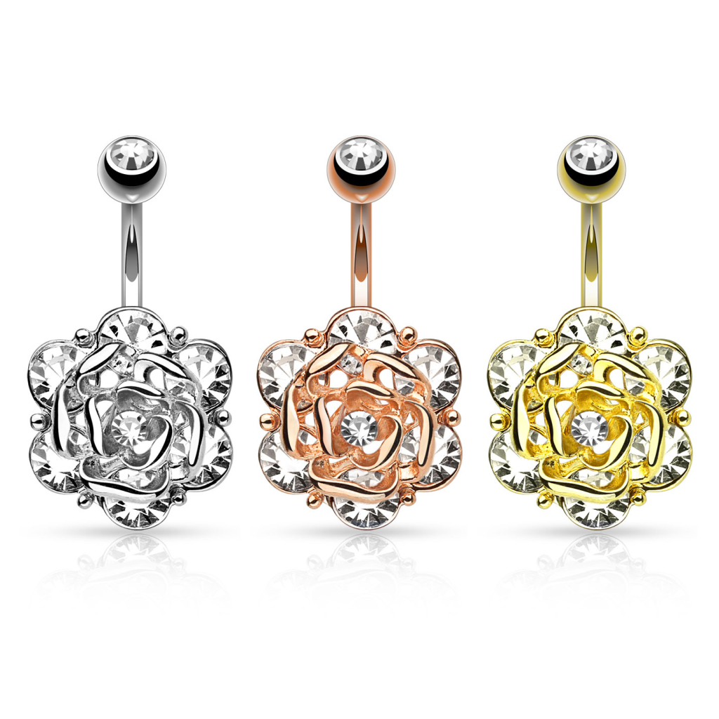 Si estás buscando una joya con muchísimos brillantes, has llegado al lugar adecuado. Aquí tienes una joya para el ombligo con una imponente flor, que brillará allá donde la lleves.