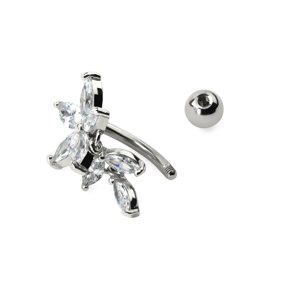 Nombre: Piercing para el ombligo invertido con flor empedrada