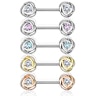 Esta deliciosa y sexy joya quedará perfecta en tu piercing en el pezón. Su barra está hecha en acero quirúrgico. En cada extremo de su barra encontrarás una pequeña rosa, hecha de latón, con una circonita en su centro. Todas las rosas están chapadas con una capa que le da su color; la de color plateado es de color metálico, mientras que las de color dorado y oro rojo tienen un chapado en oro de 14K.