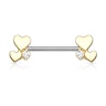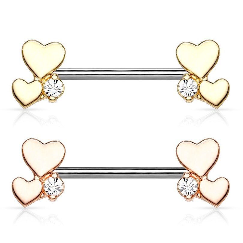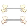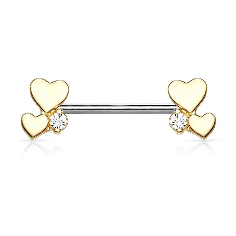 Piercing para el pezón con dos corazones y brillante en cada punta