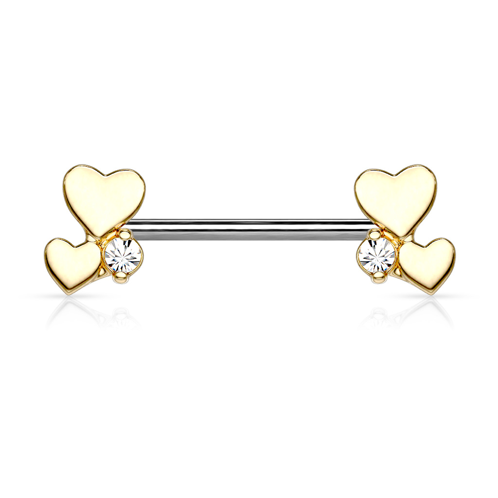 Piercing para el pezón con dos corazones y brillante en cada punta