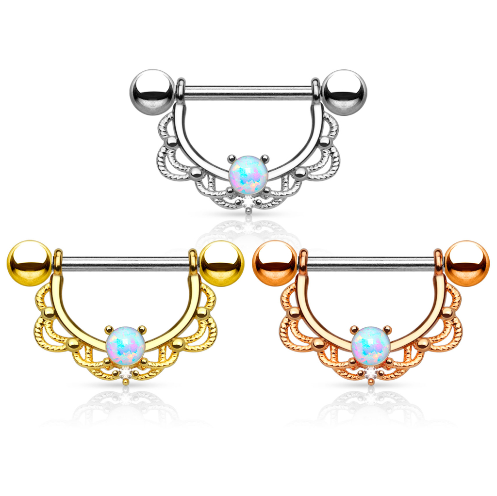 Piercing para el pezón con filigrana y ópalo