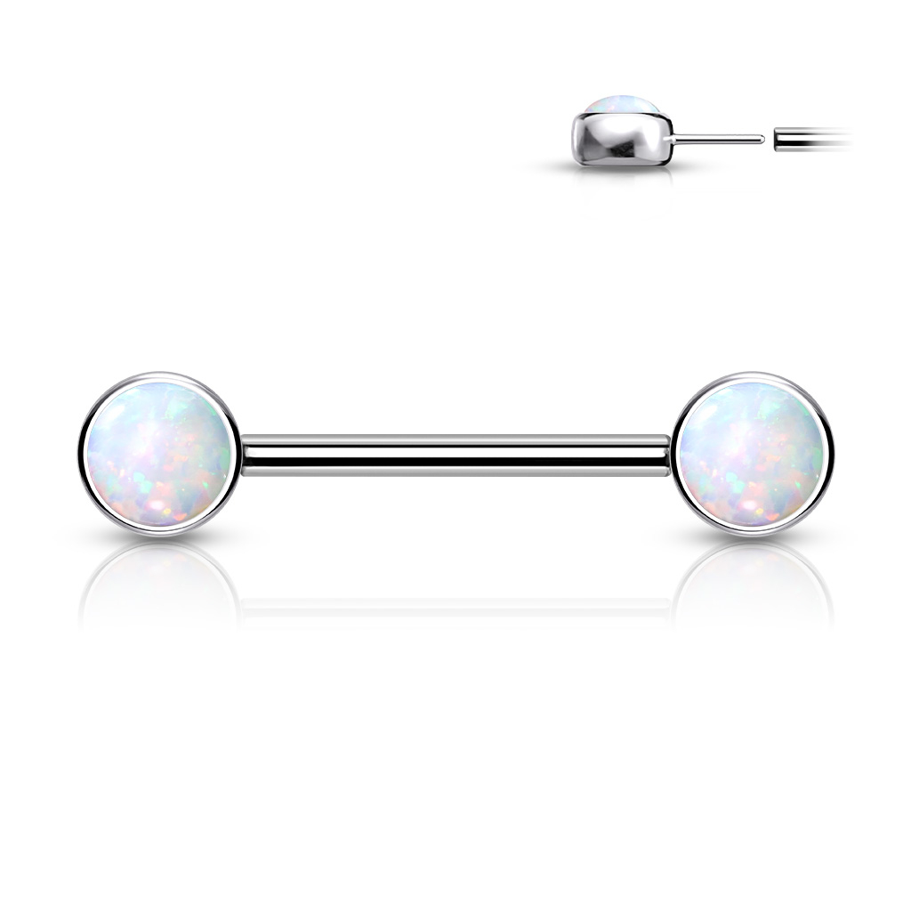 Nombre: Piercing para el pezón de titanio sin rosca con ópalos