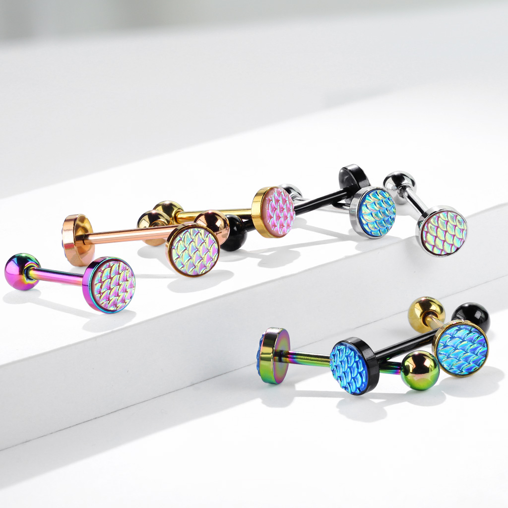 Piercing para la lengua con diseño de escamas tornasoladas