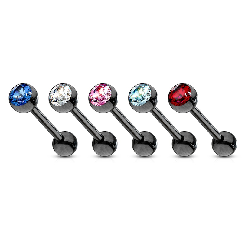 Nombre: Piercing para la lengua de color negro con brillante en colores distintos