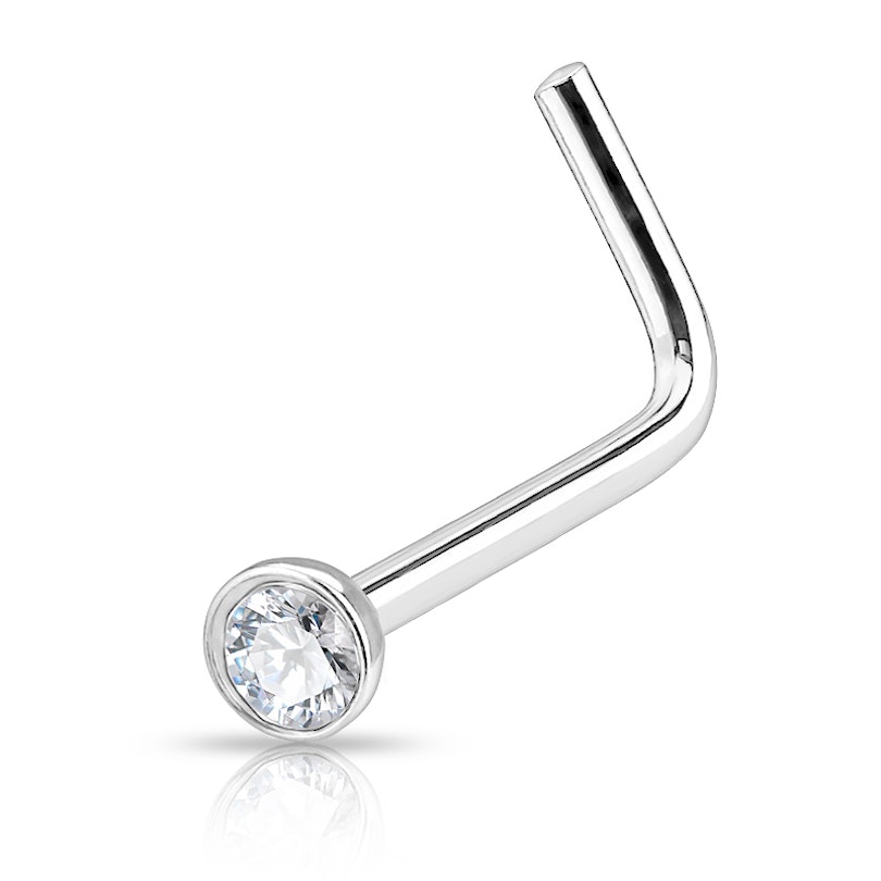 Este piercing se encuentra en un punto medio entre un tornillo y una barra para la nariz, pero lo que es seguro es que queda excelentemente sujeta gracias a su ángulo recto a 6 mm del extremo de la barra. Esta está disponible en dos grosores distintos, para que puedas elegir el que mejor se ajuste a tu perforación.