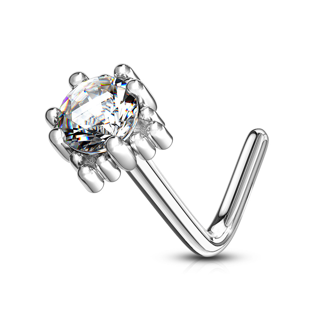Piercing para la nariz en oro 14 quilates con piedra cuadrada