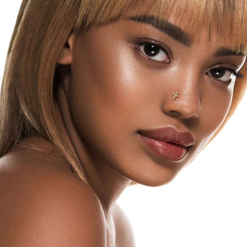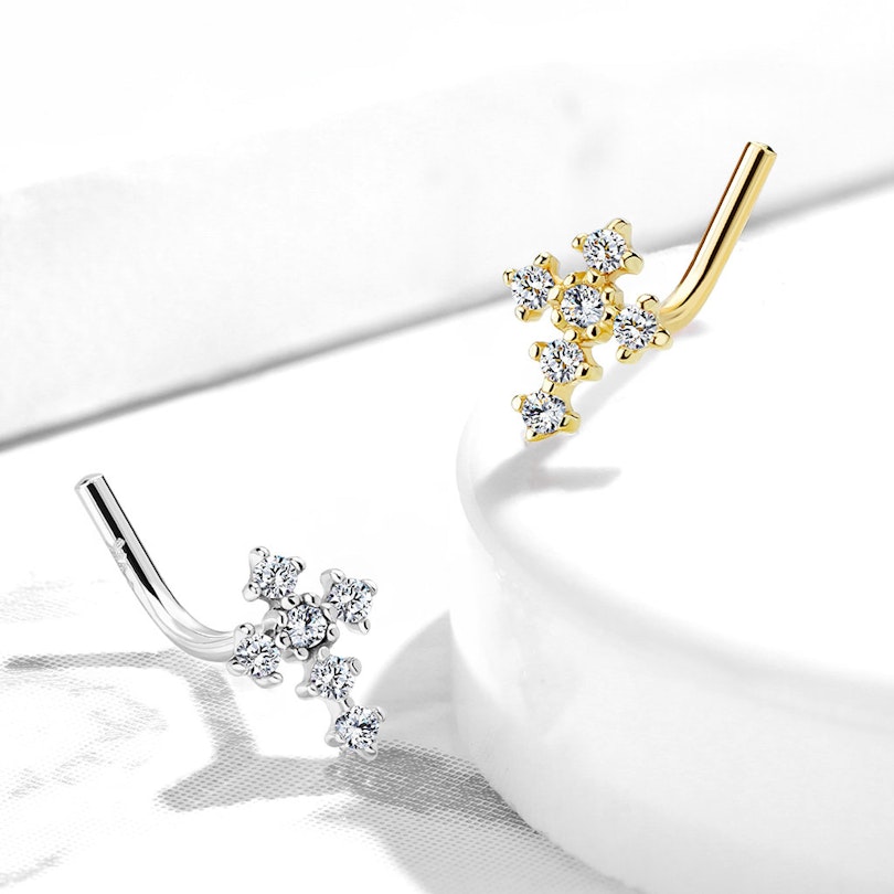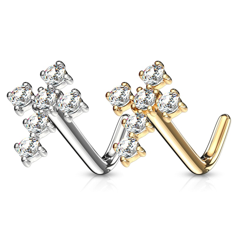 Piercing para la nariz en oro de 14 quilates con cruz cubierta de piedras