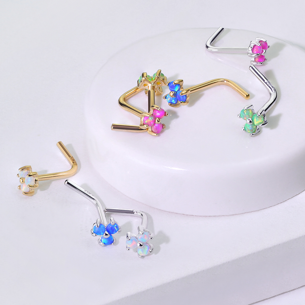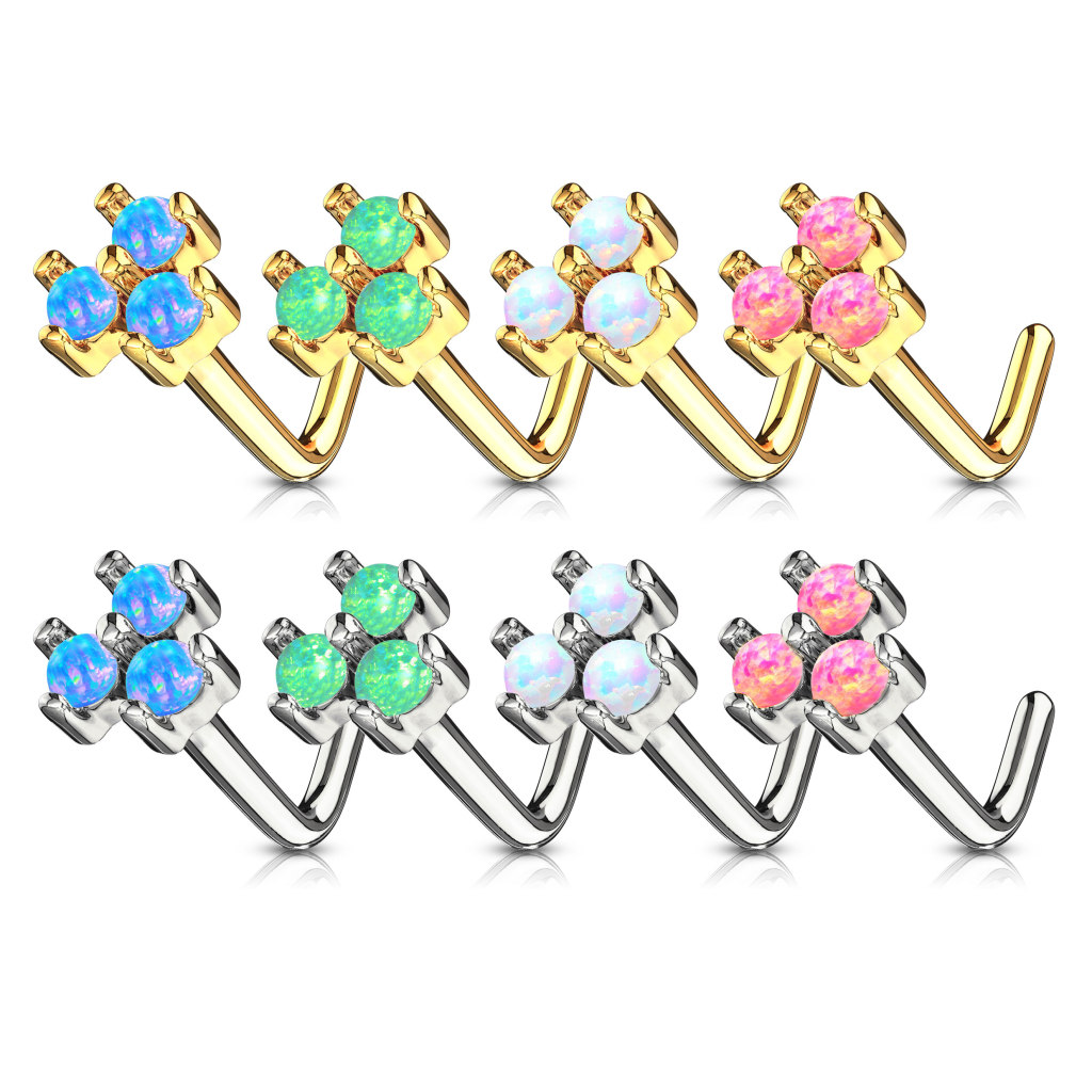 Piercing para la nariz en oro de 14 quilates con tres ópalos
