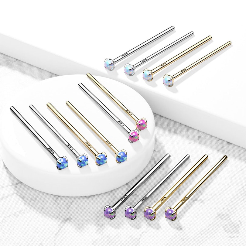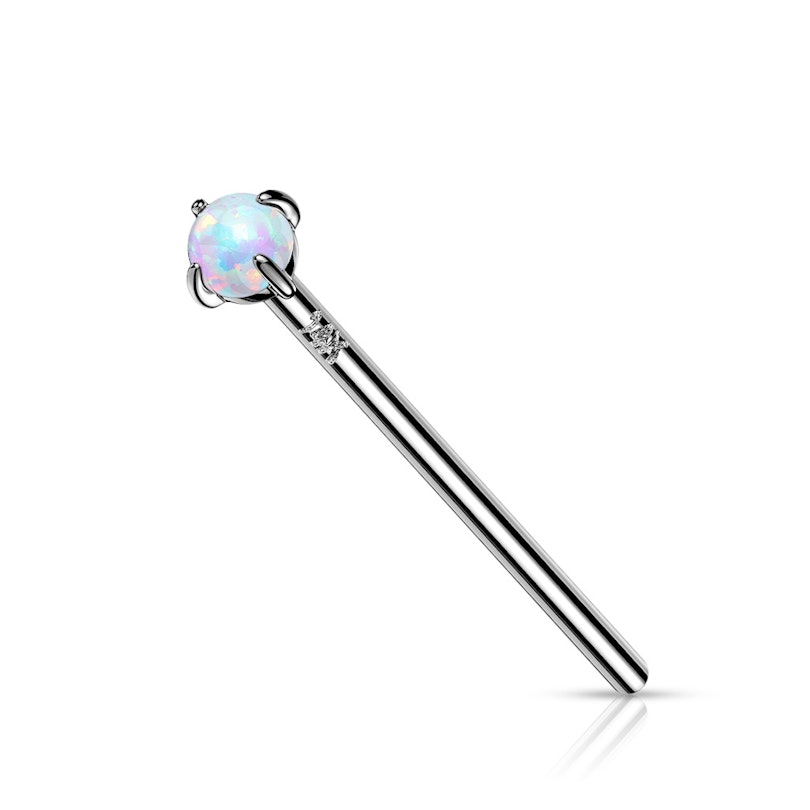 En la parte superior de la barra se encuentra un pequeño ópalo sintético. El ópalo está sujeto por cuatro garras que evitan que se caiga. Puedes elegir entre los distintos colores que ves en la imagen del producto.