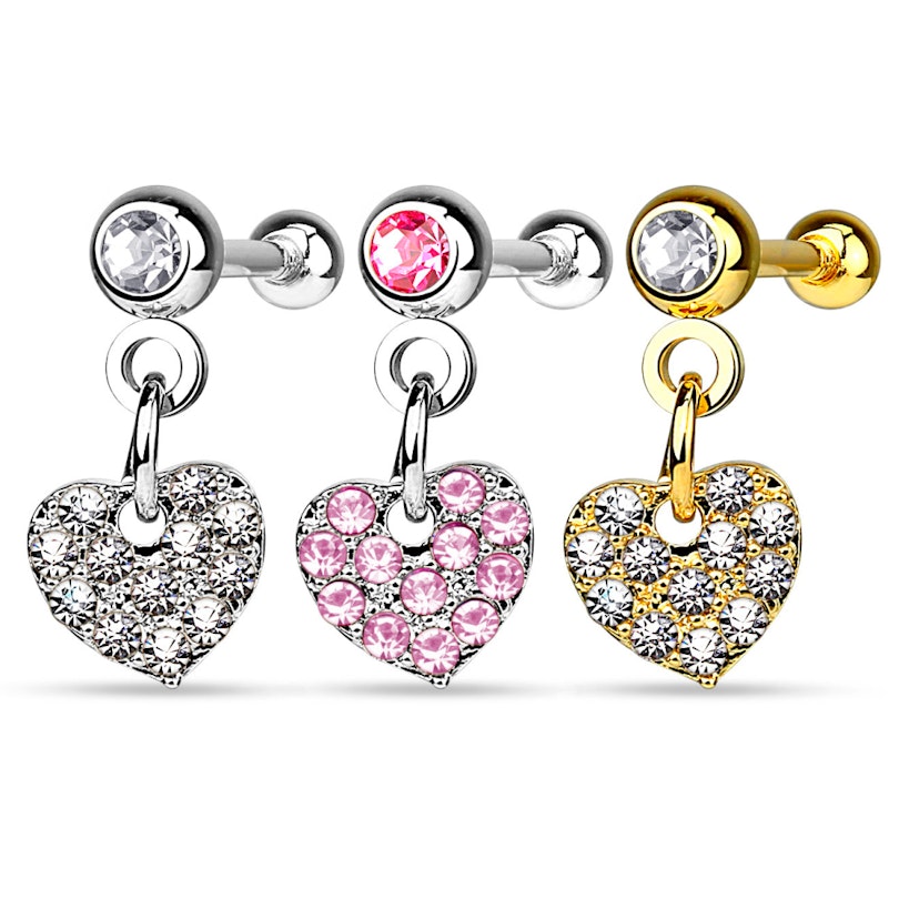 Piercing para la oreja con colgante de corazón brillante