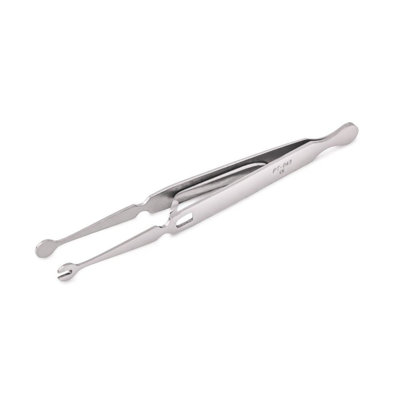 He aquí una herramienta imprescindible y perfecta para realizar piercings con labrets, especialmente en el trago y en otras zonas complicadas. Con la ayuda de estas pinzas con una garra en uno de sus extremos y una placa circular plana en el otro, podrás sujetar labrets muy fácilmente, especialmente en las zonas de más difícil fisonomía.