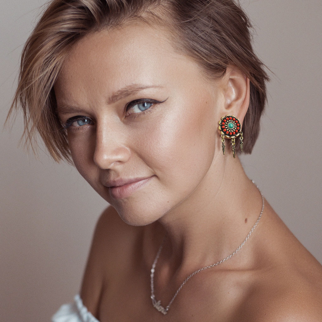 Este plug cuenta con una decoración en la parte frontal que parece una flor. La flor tiene un círculo de acrílico turquesa en el centro que combina perfectamente con los puntos rojos de alrededor. Alrededor del borde en la parte exterior del plug, se encuentran pequeñas hojas que hacen que el diseño de la flor destaque. La joya no solo consiste en una flor con muchos detalles, sino que además, también incluye tres plumas que cuelgan libremente y que seguirán los movimientos de tu cuerpo.