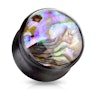 Este plug está hecho de una única pieza de madera y no incluye ninguna parte suelta ni rosca que se pueda retirar. En la parte frontal hay un trozo de concha de mejillón. Tanto la madera como la concha son materiales orgánicos, por lo que si pides dos unidades, no serán idénticas. Es la apariencia de concha la que puede variar especialmente, porque las venas y los colores pueden ser muy diferentes. Pero eso es precisamente lo que lo hace único.