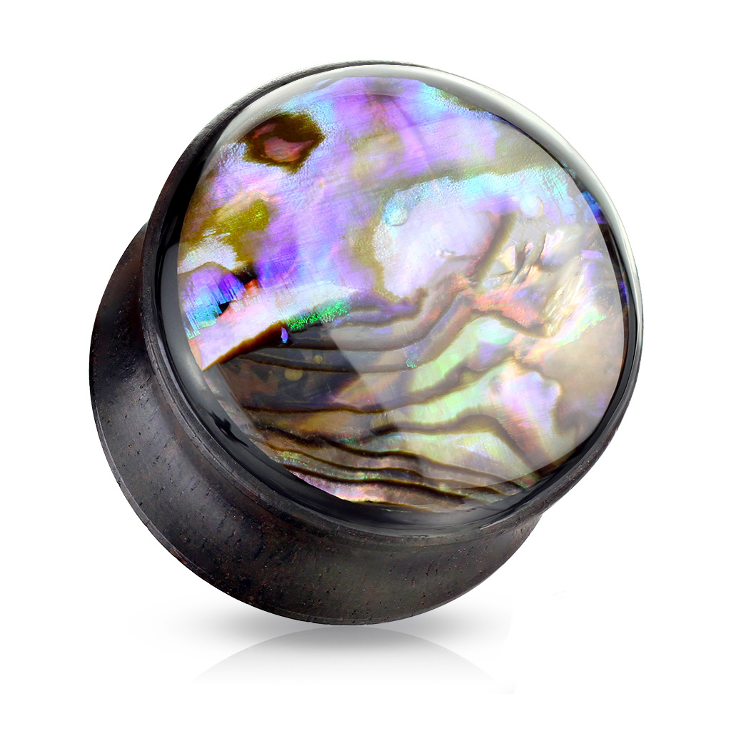 La concha de mejillón está pegada al plug y se le ha añadido una capa de acrílico para protegerla. El plug está disponible en varios grosores, siendo el más pequeño de 6 mm y el más grande de 16 mm. Las medidas cambian en intervalos de 2 mm.