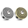 El escudo está disponible en color plateado y dorado, y decorado con varios círculos concéntricos e hileras de bolas entre ellos. De algún modo recuerda a las ondas que describe el agua calmada cuando tiramos una piedra.