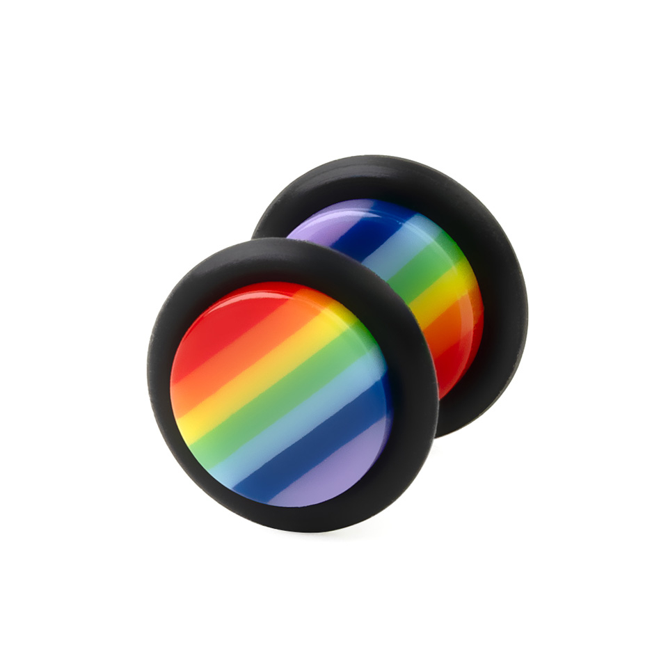 Los colores de este plug falso son supercoloridos. En cuanto alguien los vea por primera vez, probablemente los asocie con el movimiento LGTB, que se identifica con estos colores desde los años 70, o quizás con la menos conocida "bandera de la paz".