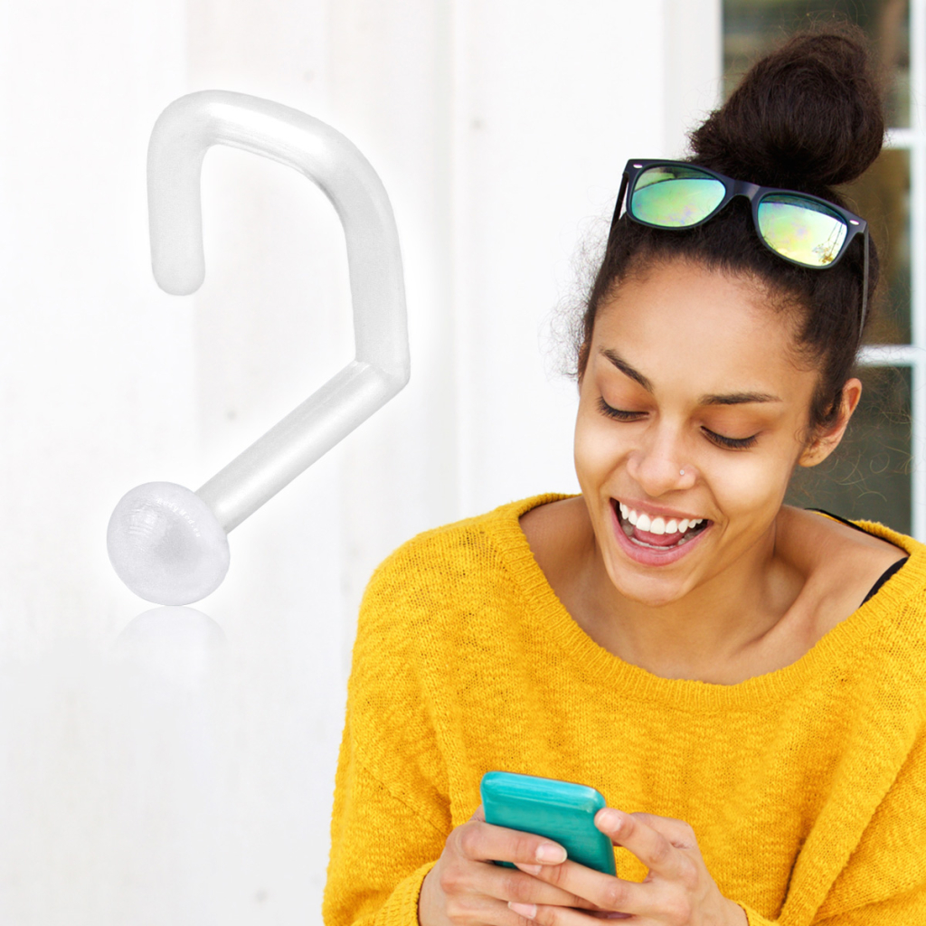Este retenedor-joya para el piercing en la nariz está hecho en PTFE. A este tipo de joyas se les llama retenedores, y son estupendas como joyas para trabajar. Es una joya perfecta para llevar en ciertas ocasiones, como en el lugar de trabajo, en la escuela, o cuando vayas a tomar café con tu abuela.